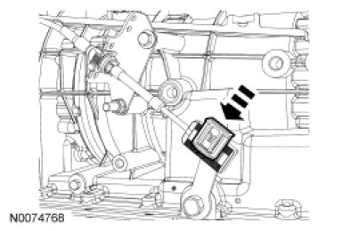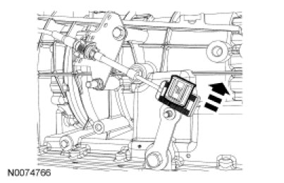 NOTE: When installing the selector lever cable end, make sure that the selector lever cable end is correctly installed onto the manual control lever ball stud. Pull back on the selector lever cable to make sure that the selector cable end is correctly installed onto the manual control lever ball stud.