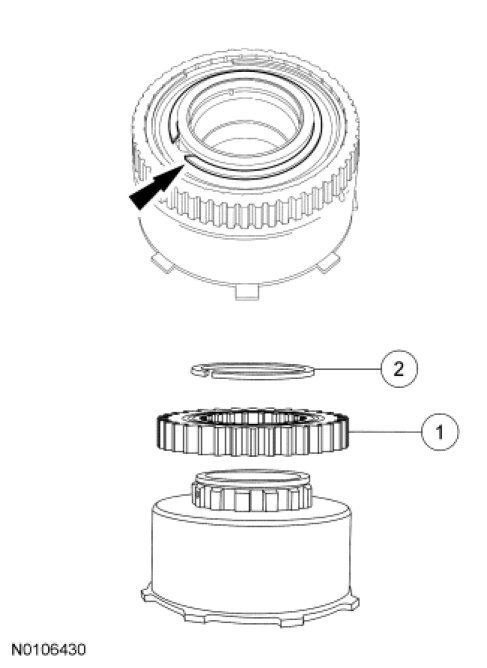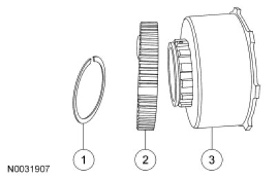 NOTE: If the retaining ring shows signs of distortion or expansion, replace the intermediate one-way rocker clutch and retaining ring.