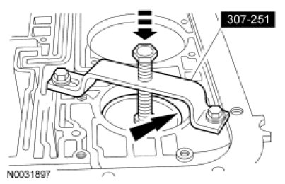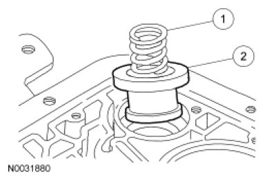 6. NOTICE: If installing a new transmission fluid filter and the grommet remains in the main control bore, carefully use a small screwdriver to remove the grommet. Use care not to damage the main control bore.