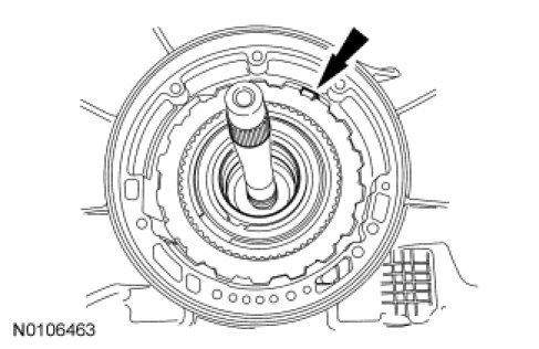 41. Align the reverse sun shell with the overdrive band anchor pin for removal.