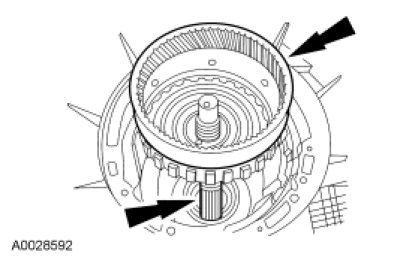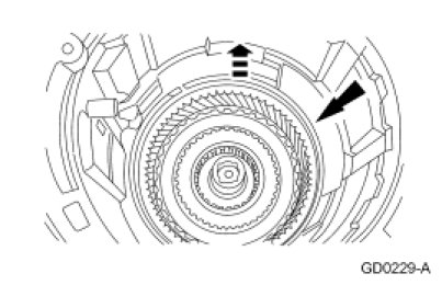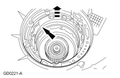 37. NOTICE: Remove the assembly carefully to prevent damage to the overdrive band friction material by the reverse clutch drive lugs.