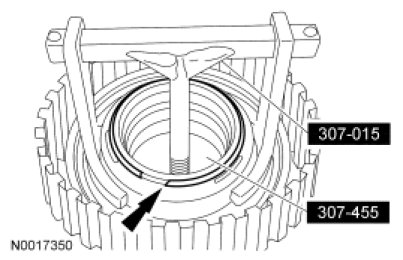 4. Using the Clutch Spring Compressor Aligner and the Clutch Spring Compressor, install the snap ring.