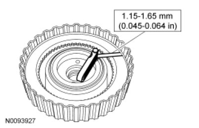 7. Using a feeler gauge, measure the clearance between the snap ring and the pressure plate in 3 different locations.