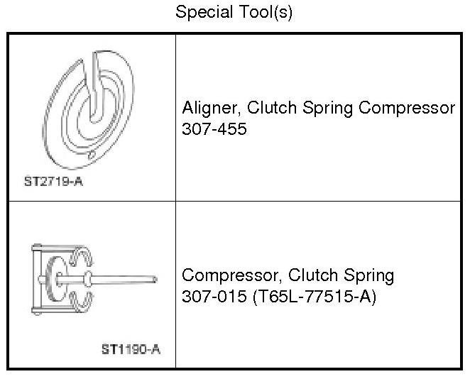 4. Using the Clutch Spring Compressor Aligner and the Clutch Spring Compressor, remove the snap ring.