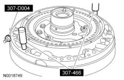 NOTE: Note the location of the Transmission Fluid Pump Alignment Pins. The Transmission Fluid Pump Alignment Pins should be installed at the 1 o'clock and 7 o'clock position with the pump filter inlet sump at the 6 o'clock position. The Transmission Fluid Pump Alignment Pins should move freely when installing the band strap.