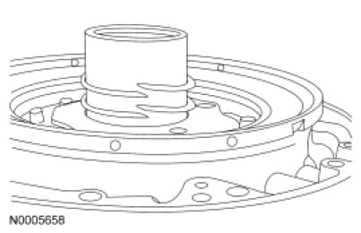 11. Inspect the converter hub bushing. If scored or excessively worn, install a new pump. Note the orientation of the notch in the bushing. It must face up.