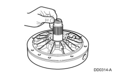 13. NOTE: Late build models have no tabs on the No. 2A O/D sun gear thrust bearing. Install the No. 2A O/D sun gear thrust bearing with the dark side facing up.