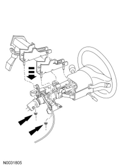 5. Remove the 4 steering column-to-cross car beam nuts and lower the steering column.