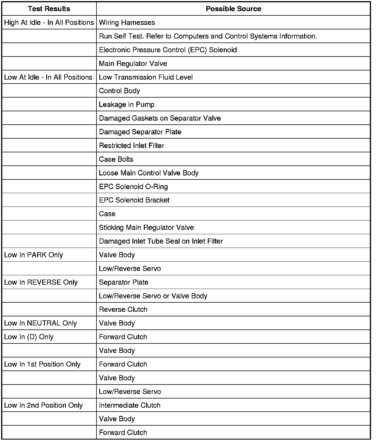 Line Pressure Diagnosis Chart