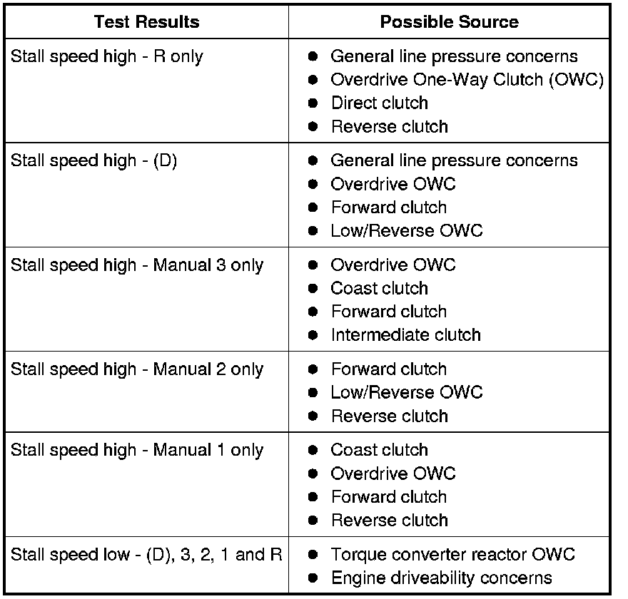 Stall Speed Diagnosis Chart