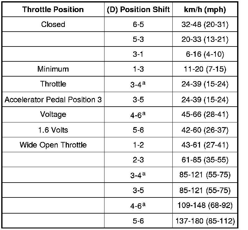 NOTE: All shift speeds listed are nominal and vary with calibration, model, axle ratio and tire size.
