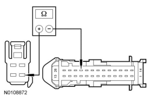 - Measure the resistance between BSIA C2008-3, circuit CET53 (BU/OG), harness side and ground.