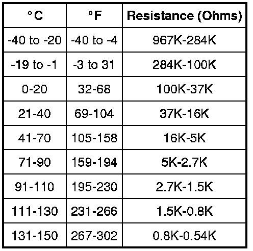 - Resistance should be approximately within the following ranges using the following chart.
