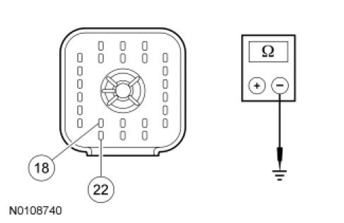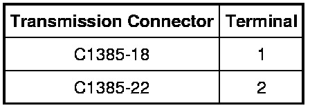 - Measure the resistance between the transmission internal harness C1385-18 and C1385-22, component side.