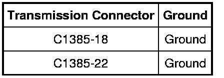 - Measure the resistance between transmission internal harness C1385 and ground using the following chart.