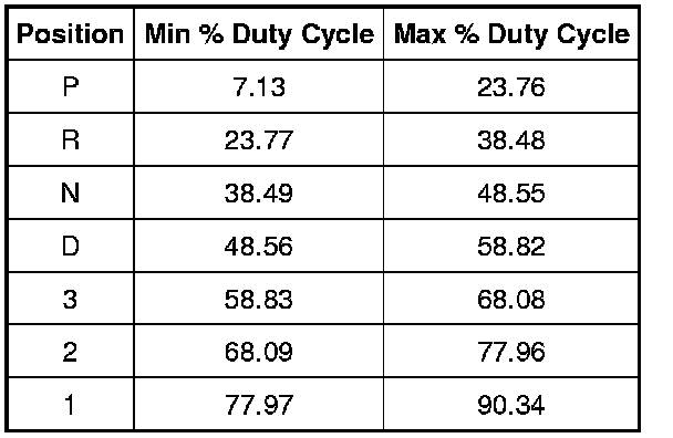 - Compare the PID: TR_DC to the TR position Duty Cycle Chart.