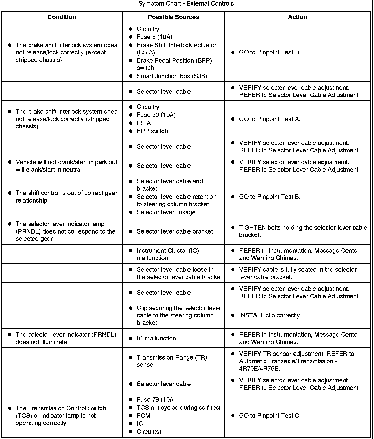 Symptom Chart - External Controls