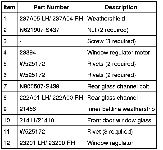Glass, Frames and Mechanisms - Exploded View