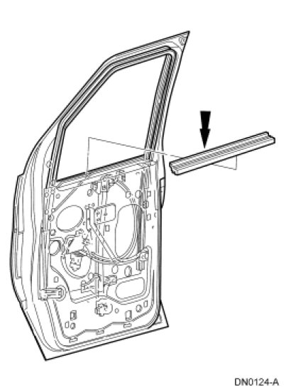 4. Lower the window glass to gain access to the 2 glass bracket retaining rivets.