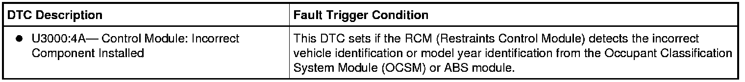 - Incorrect RCM (Restraints Control Module)