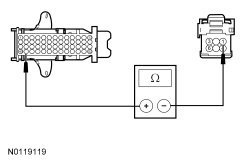 - Measure the resistance between start/stop switch C2195-3, circuit GD115 (BK/GY), harness side and ground.