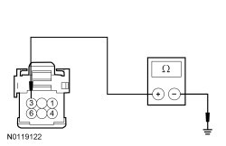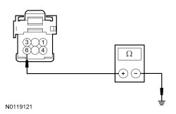 - Measure the resistance between start/stop switch C2195-6, circuit CPK35 (YE/OG), harness side and ground.