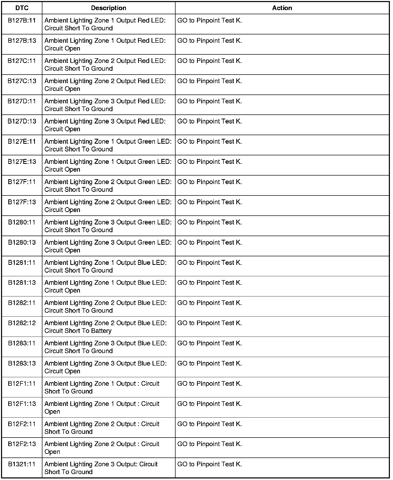 HVAC Module DTC Chart