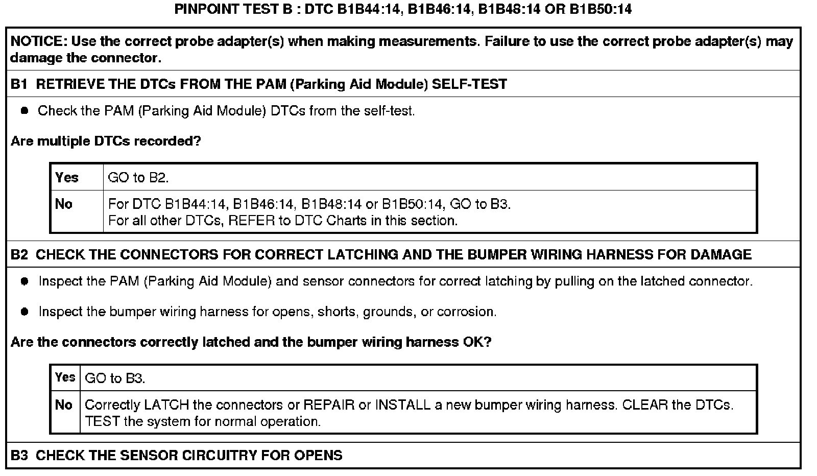 Pinpoint Test B: DTC B1B44:14, B1B46:14, B1B48:14 Or B1B50:14