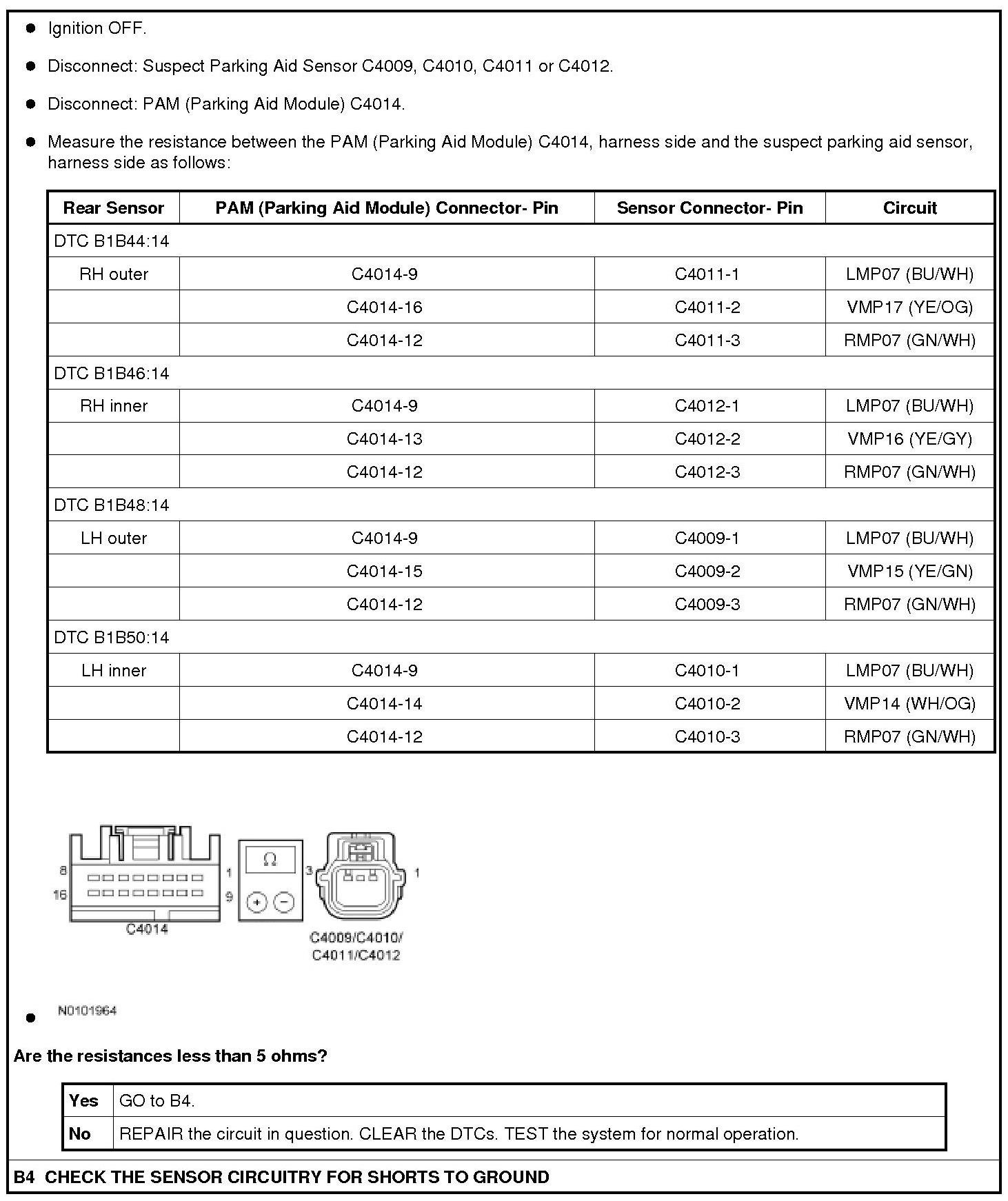 Refer to Wiring Diagram Set 131, Parking Aid for schematic and connector information. [1][2]Diagrams By Number