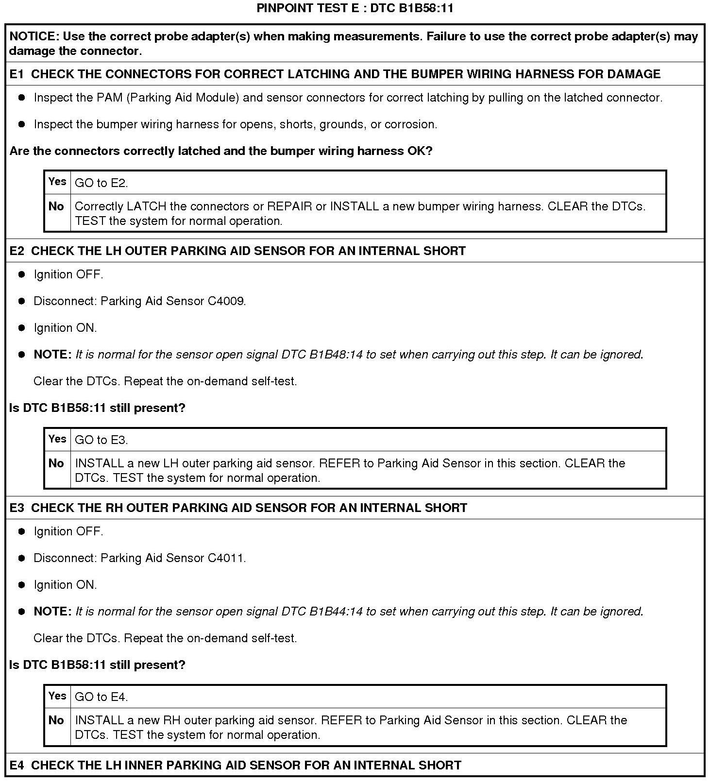Pinpoint Test E: DTC B1B58:11
