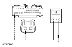 - Measure the resistance between DCSM (Dual Climate Controlled Seat Module) C3036A-M, circuit GD145 (BK/BU), harness side and ground.