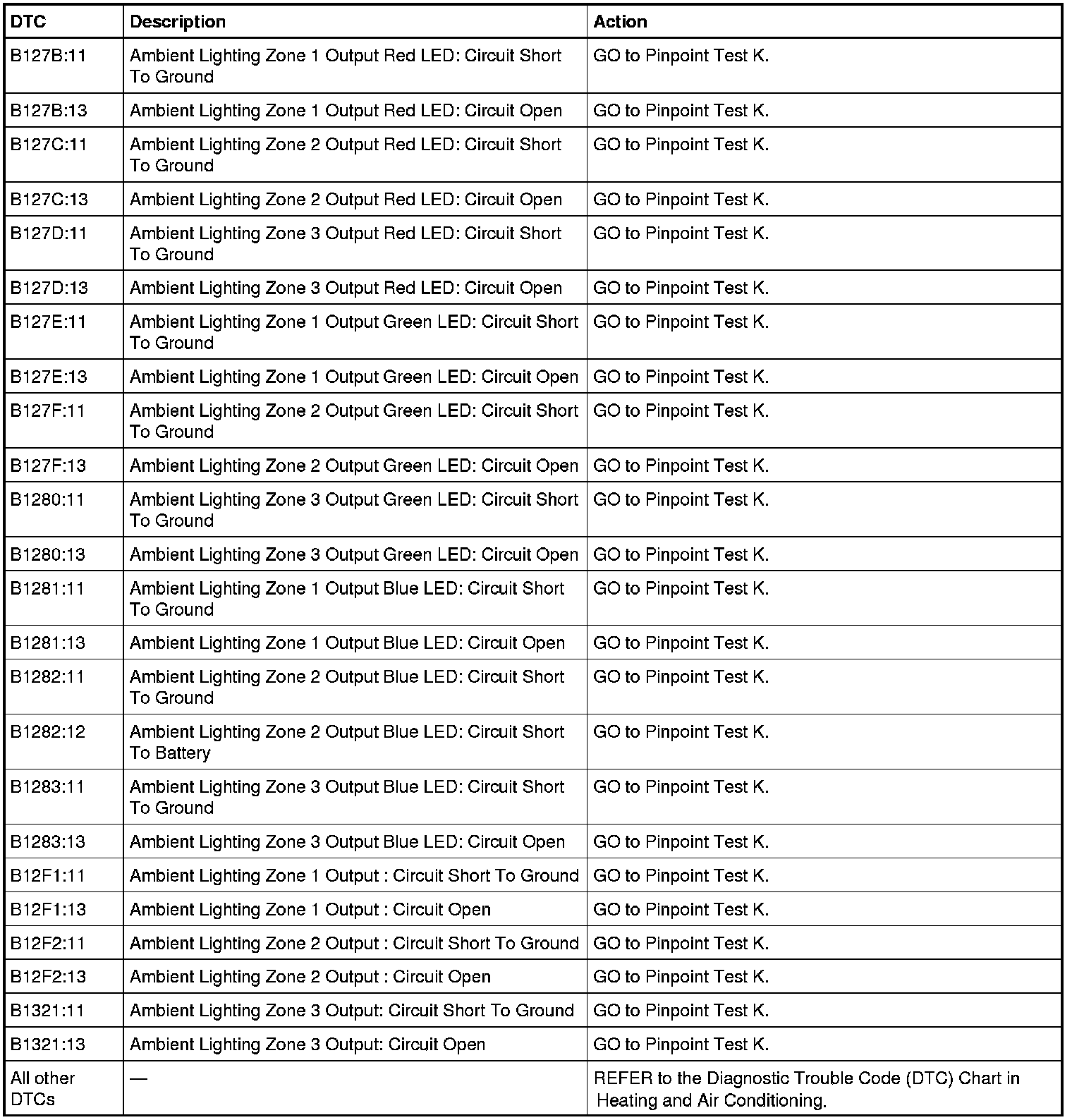 HVAC Module DTC Chart