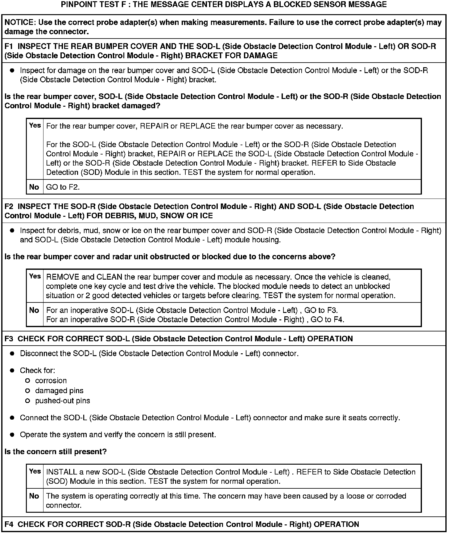 Pinpoint Test F: The Message Center Displays A Blocked Sensor Message