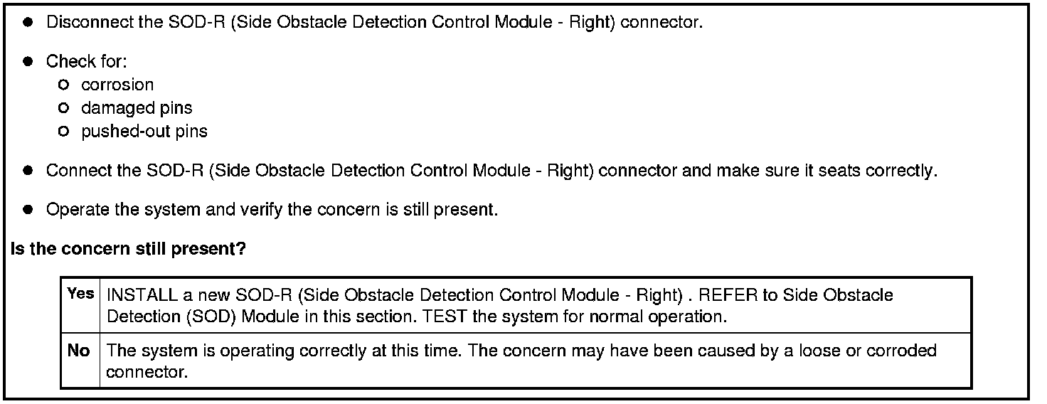 A blocked sensor message indicates there is an obstruction on the rear bumper cover that does not allow the radar from the Side Obstacle Detection Control Module - Right (SOD-R) and Side Obstacle Detection Control Module - Left (SOD-L) to penetrate. Wet mud, thick mud, heavy rain, heavy road splash from rain, snow or ice are possible obstructions.