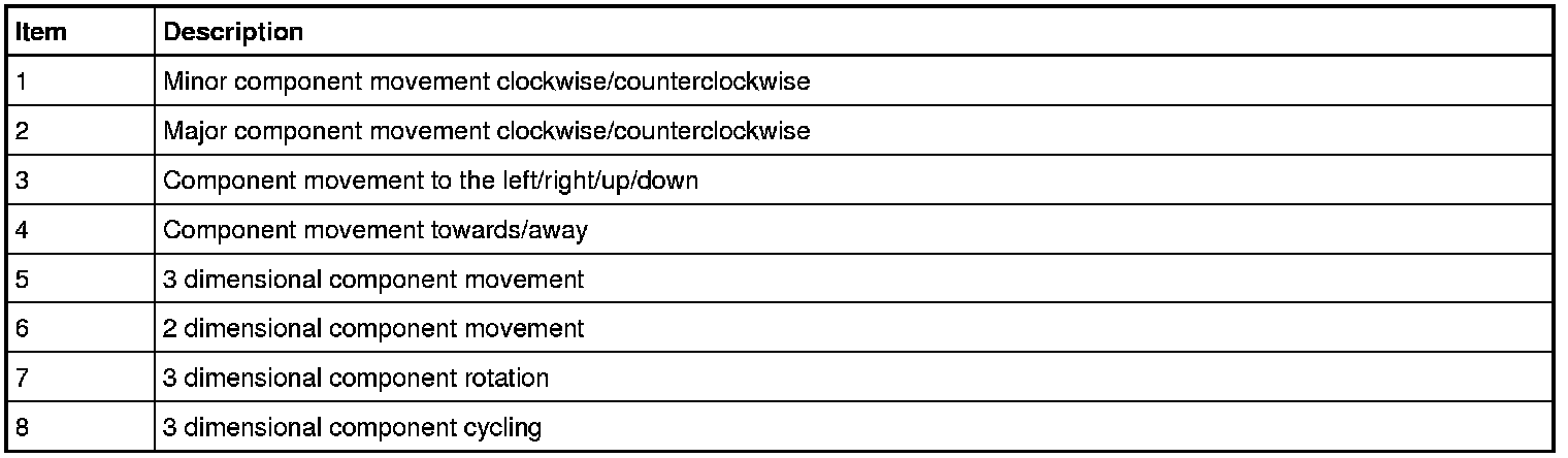 Movement symbols provide detailed information to a required component movement. These component movements can be rotational or 1-3 dimensional movements.