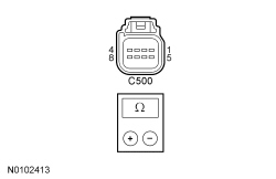 - Measure the resistance between the keyless entry keypad C500-2, circuit GD133 (BK), harness side and ground.