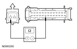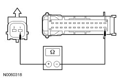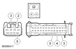 - Measure the resistance between power liftgate latch C4339-8, circuit GD149 (BK/GY), harness side and ground.