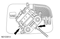 Firmly press the exterior mirror glass until it snaps onto the exterior mirror motor.