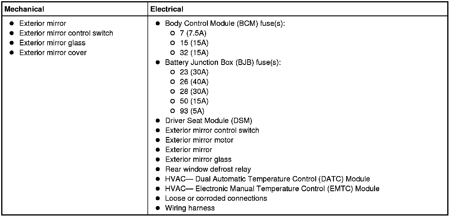 9. If the DTCs retrieved are related to the concern, go to DTC Charts. Mirrors