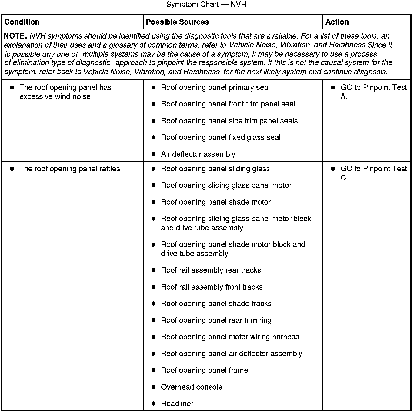 Symptom Chart - NVH