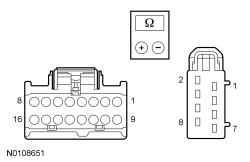 - NOTICE: The ohmmeter must be connected with the positive lead to pin 7 and the negative lead to pin 4 when measuring. Ohmmeter leads incorrectly connected results in false readings and leads to incorrect identification of components that are not damaged.