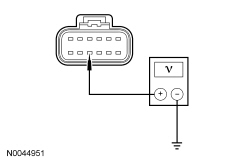 - Measure the voltage between DCSM (Dual Climate Controlled Seat Module) C3036A-K, circuit RHS01 (WH/VT), harness side and ground.