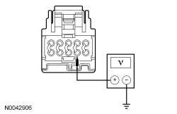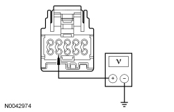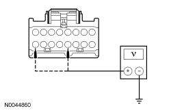 - Measure the voltage between DCSM (Dual Climate Controlled Seat Module) C3036B-9, circuit VHS35 (VT/OG), harness side and ground.