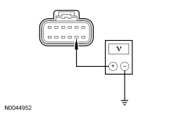 - Measure the voltage between DCSM (Dual Climate Controlled Seat Module) C3036A-H, circuit RHS02 (BU/OG), harness side and ground.