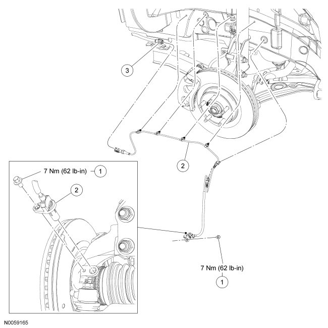 6. NOTICE: The wheel speed sensor harness must be routed as shown or damage to the harness during vehicle jounce and rebound can occur.