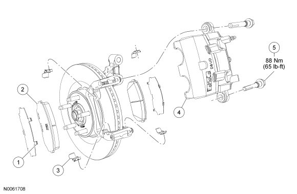 NOTICE: Make sure that the caliper guide pin boots are fully seated or damage to the caliper guide pin boots can occur.