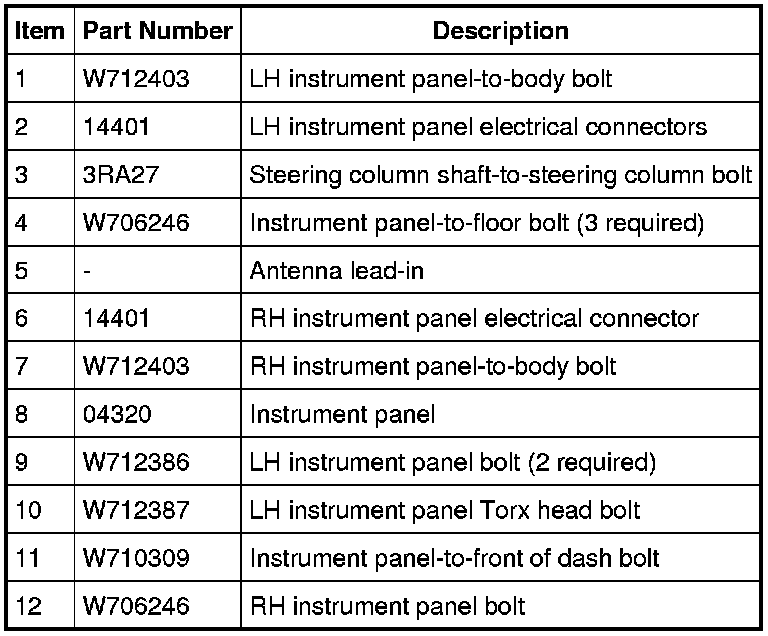MKX Instrument Panel Fasteners