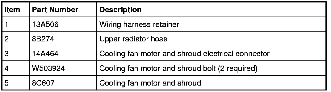 6. Remove the 2 bolts and the cooling fan motor and shroud.