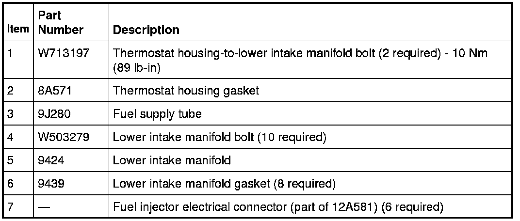 Using new intake manifold and thermostat housing gaskets, install the lower intake manifold and the 10 bolts.