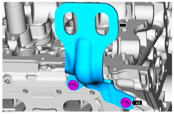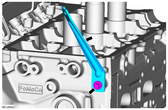 74. Install the 2 new LH VCT (Variable Camshaft Timing) bolts and tighten in 4 stages.